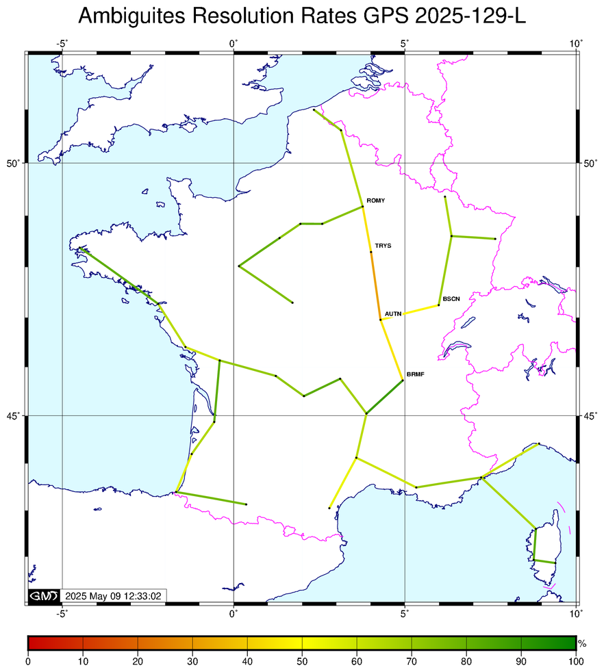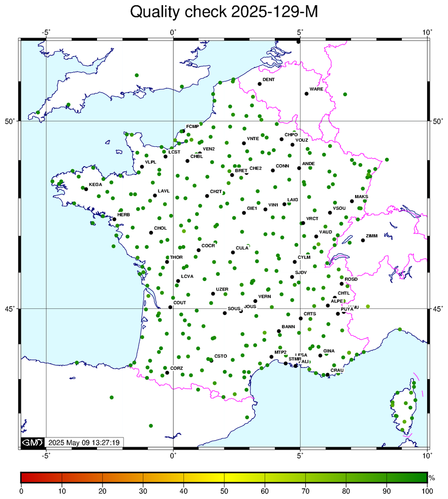 | Station | Dernier fichier | Ratio des fichiers précédents | Ratio qc_gps | Ratio qc_glo | qc - header GPS | qc - header GLO | IOD slips <10° | IOD slips >10° | Station utilisée dans le calcul |